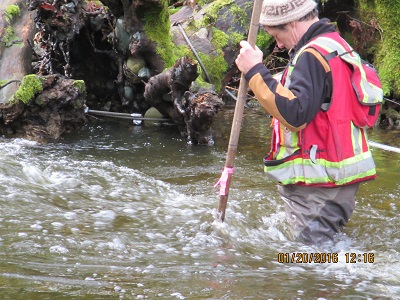 On January 20, 2016 Dave Clough, the biologists who developed the restoration project, along with several MVIHES volunteers, conducted an assessment of the past decade of work. We were very pleased to learn that the rock and LWD structures are still in good condition. PLUS, the objectives of preventing steam bank erosion, and creating riffles and deep pools for fish habitat have been achieved. A very good outcome indeed!